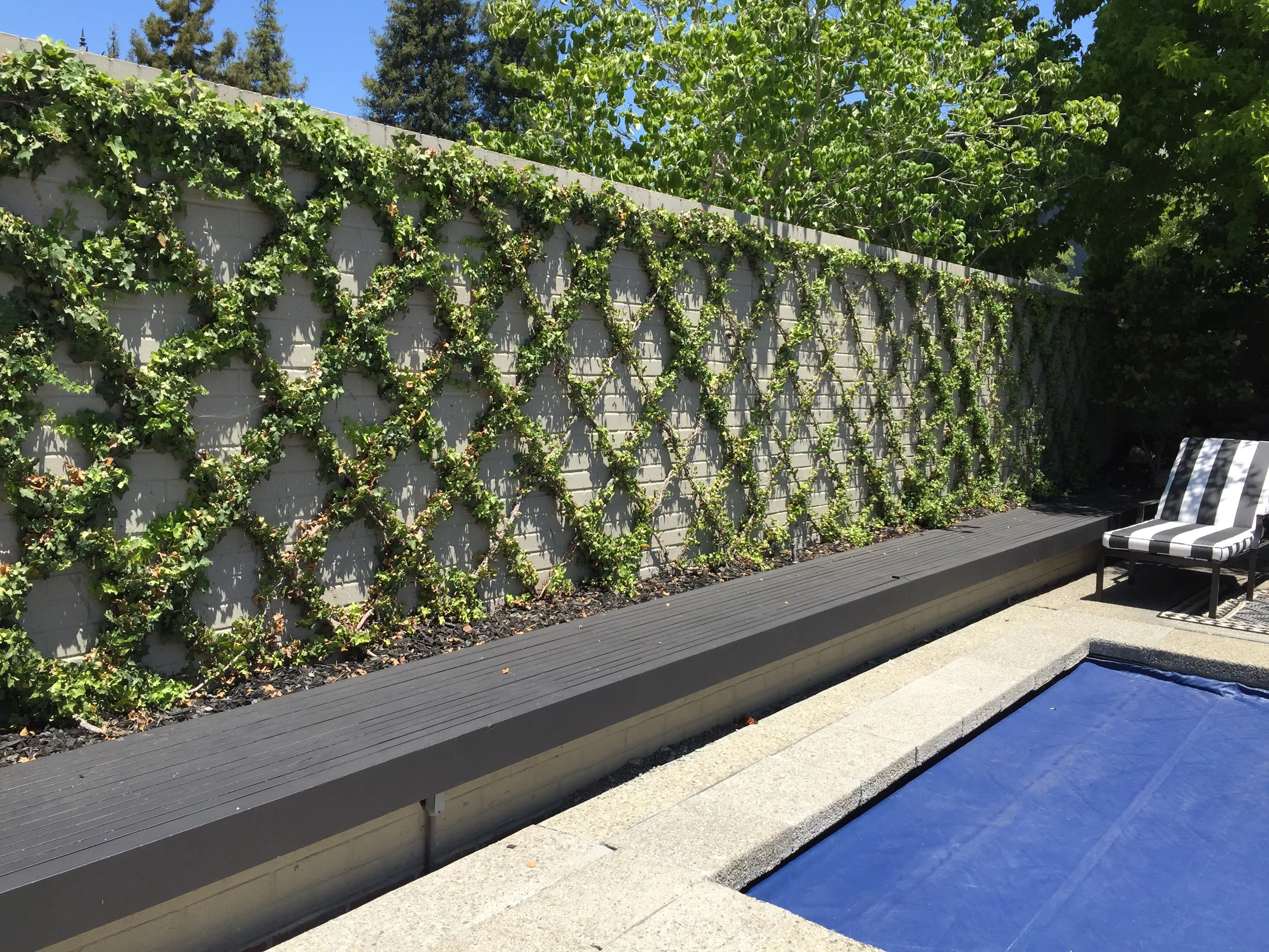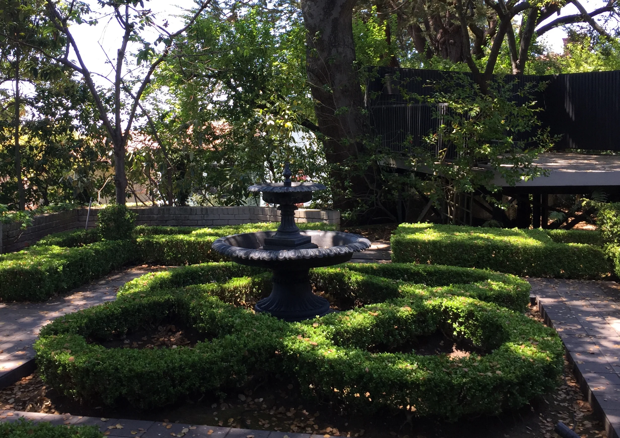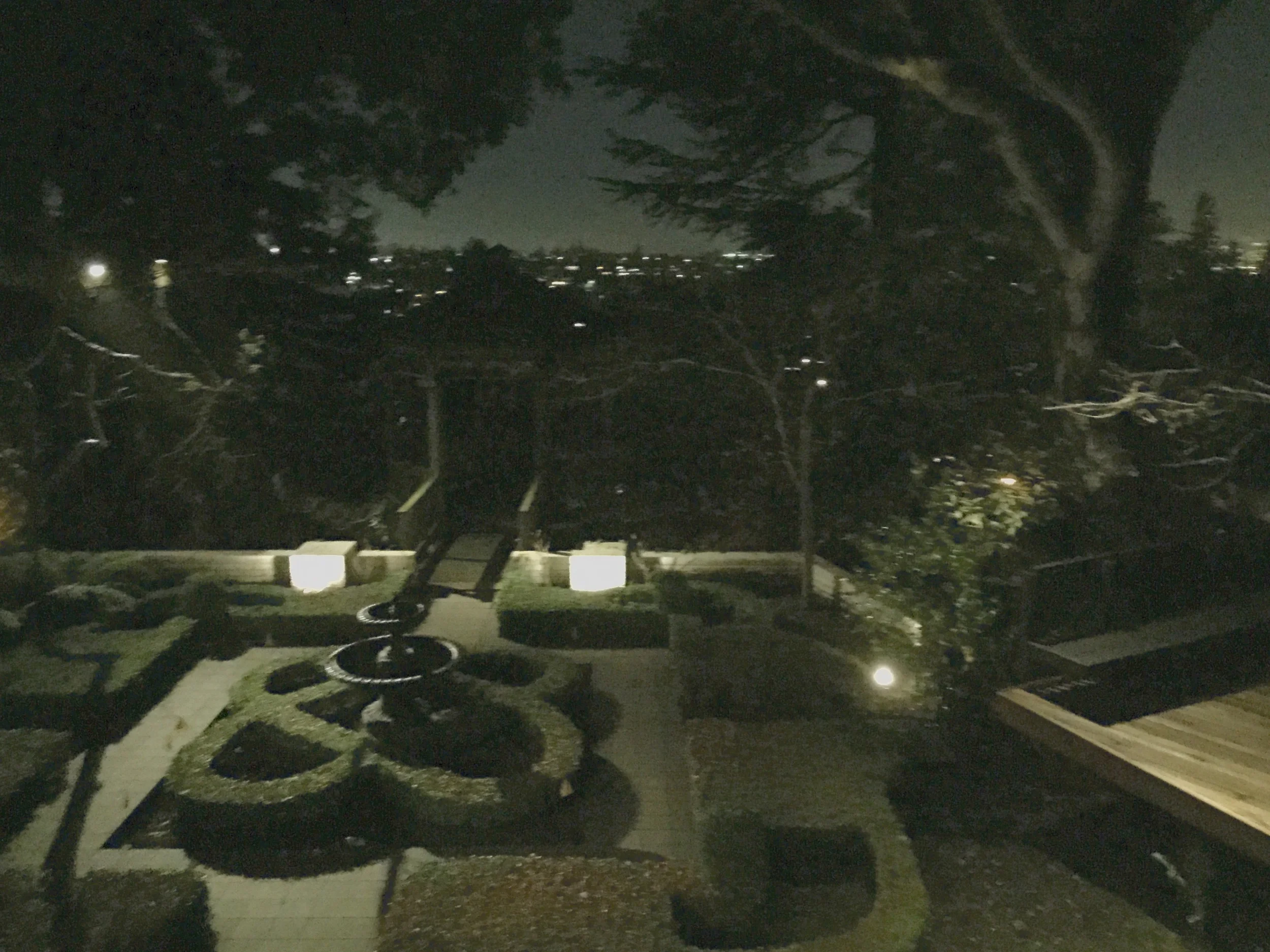 Below are photos of a recent light installation I designed. The photos show what the garden looks like during the day and night. This particular garden has mature plant material, so using up-lights to accent the existing sculptural planting was a must. A moonlit effect over the parterre garden was created by using soft down-lights.